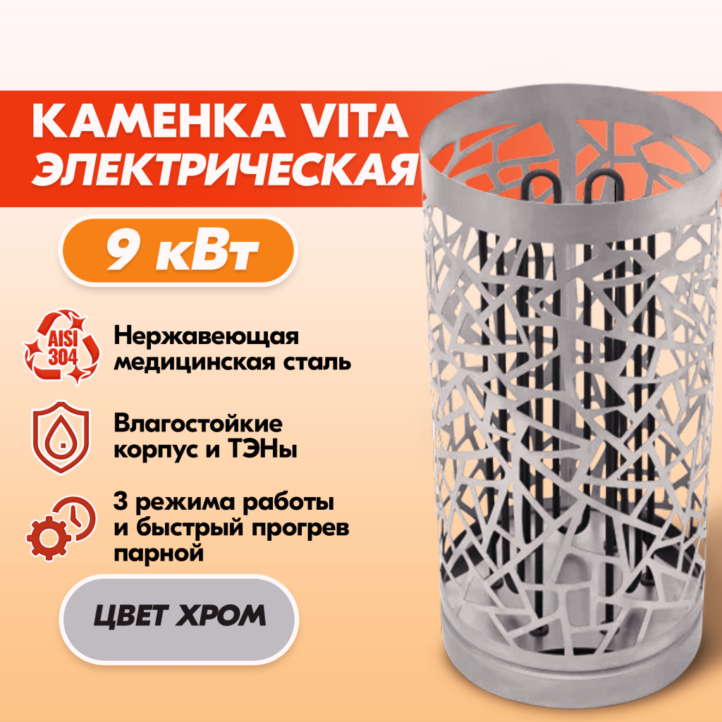 Электрокаменка VITA 9 кВт нерж. в Барнауле | Доставка по России