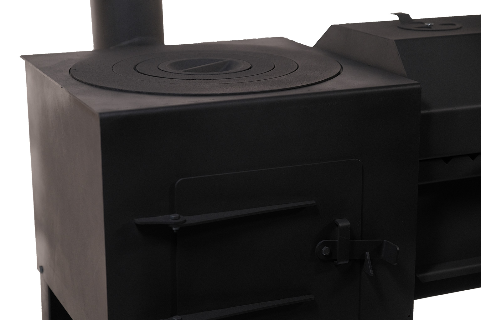 Зольный ящик разделен на 2 сегмента, что позволяет легко удалить продукты горения после использования данной модели, сохраняя чистоту на дачном участке, а также регулировать интенсивность горения как с одной, так и с другой половины. Удобные полки позволяют с комфортом разместить все необходимые аксессуары.