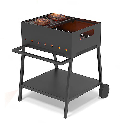 Длинные боковые стороны мангала усилены стальным прутком толщиной 10 миллиметров. Надёжно приваренные прутки предотвращают деформацию боковых стенок мангала, а также служат местом размещения одной или двух чугунных решёток Везувий Стейк.