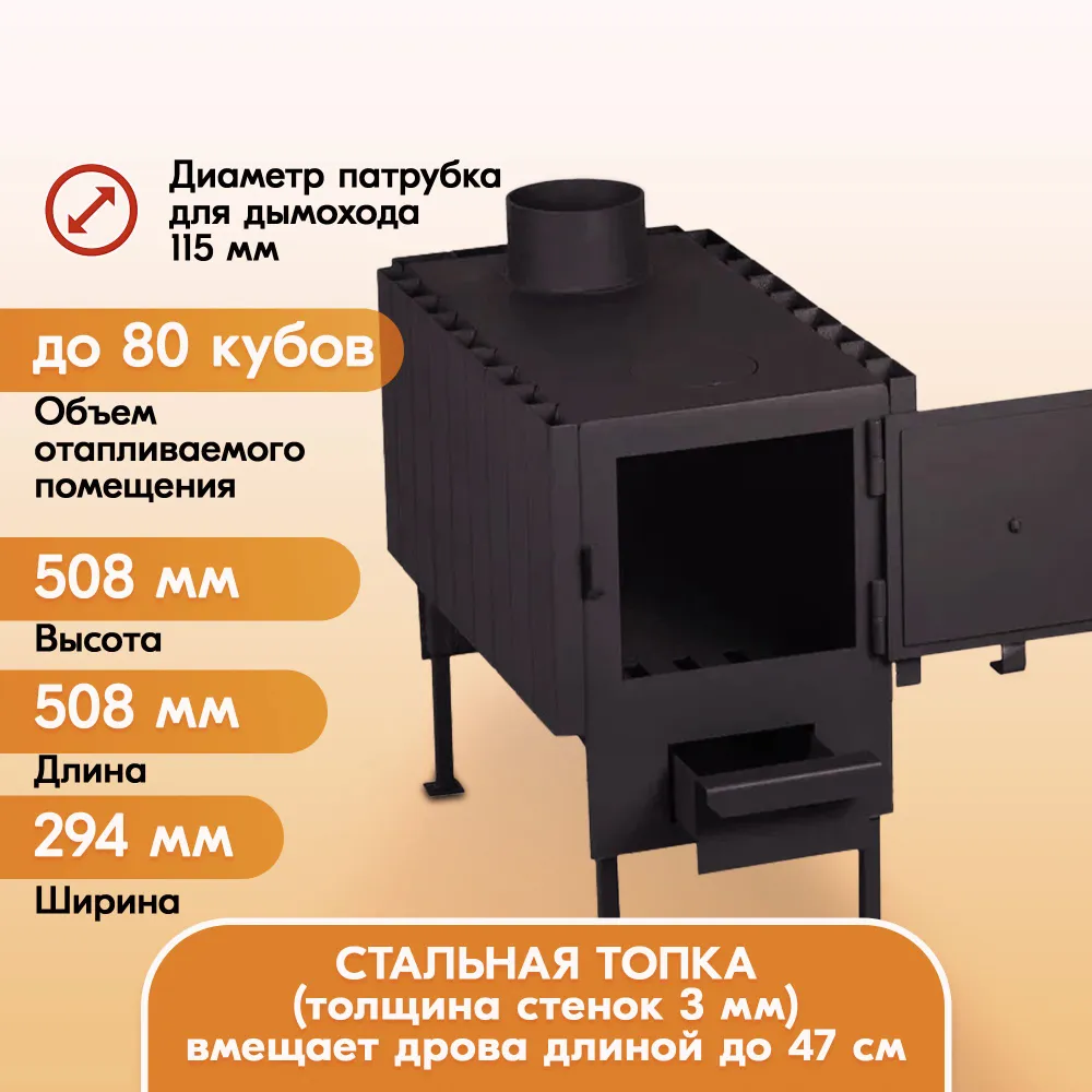 Усовершенствованная конструкция классической буржуйки от производителя PECHITEPLOV на 70% эффективнее обычных буржуек и является оптимальным вариантом отопления небольших помещений – гаражей, приусадебных домиков, хозяйственных помещений и даже теплиц.