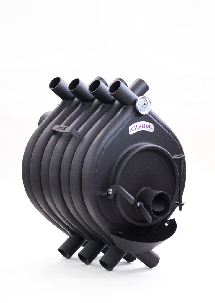 Воздухогрейная печь "Сибирь БВ" - 120 - это инновационная запатентованная модель завода "НМК". Печь представляет собой цельнометаллическую конструкцию, состоящую из многочисленных соединенных между собой металлических труб круглого сечения в количестве 7 штук, обеспечивающую естественную конвекцию, благодаря чему происходит быстрое нагревание воздуха и его плавное распределение по всему объему помещения. За основу был взят канадский отопительный аналог, который был технически и конструкционно доработан, проверен и адаптирован под суровые условия со значительными перепадами среднегодовых температур.