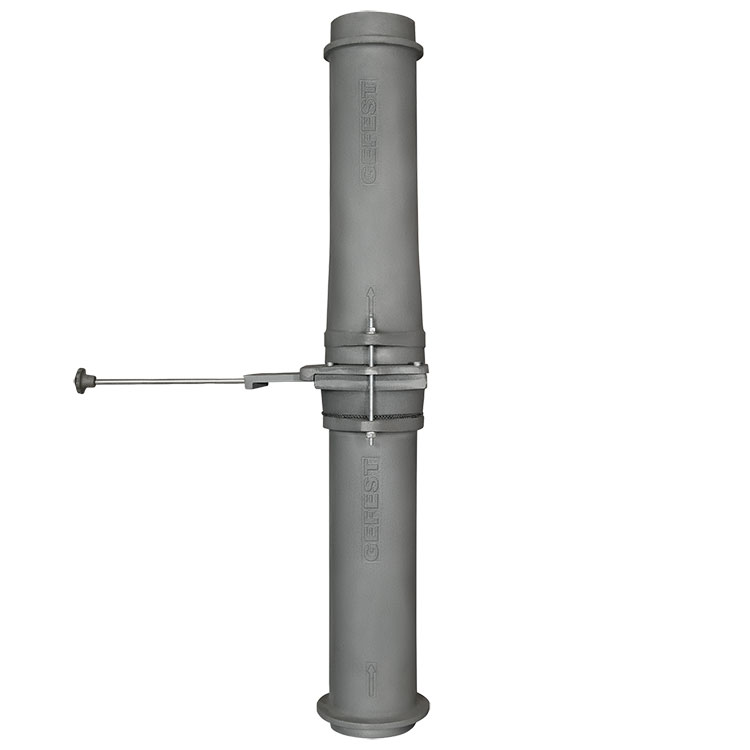 Шиберный модуль представляет собой  два отрезка чугунной трубы с закрепленным между ними самим шибером. Верхняя труба имеет отличие-- раструб в нижней части. Стягивается  шиберный блок очень прочно. Для герметизации   используется