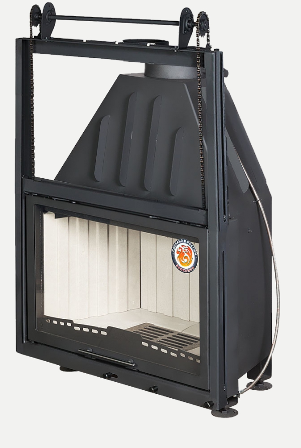 •Высокий дымосборник и пламярассекатель не позволяют продуктам горения попадать в помещение  при открывании дверцы.