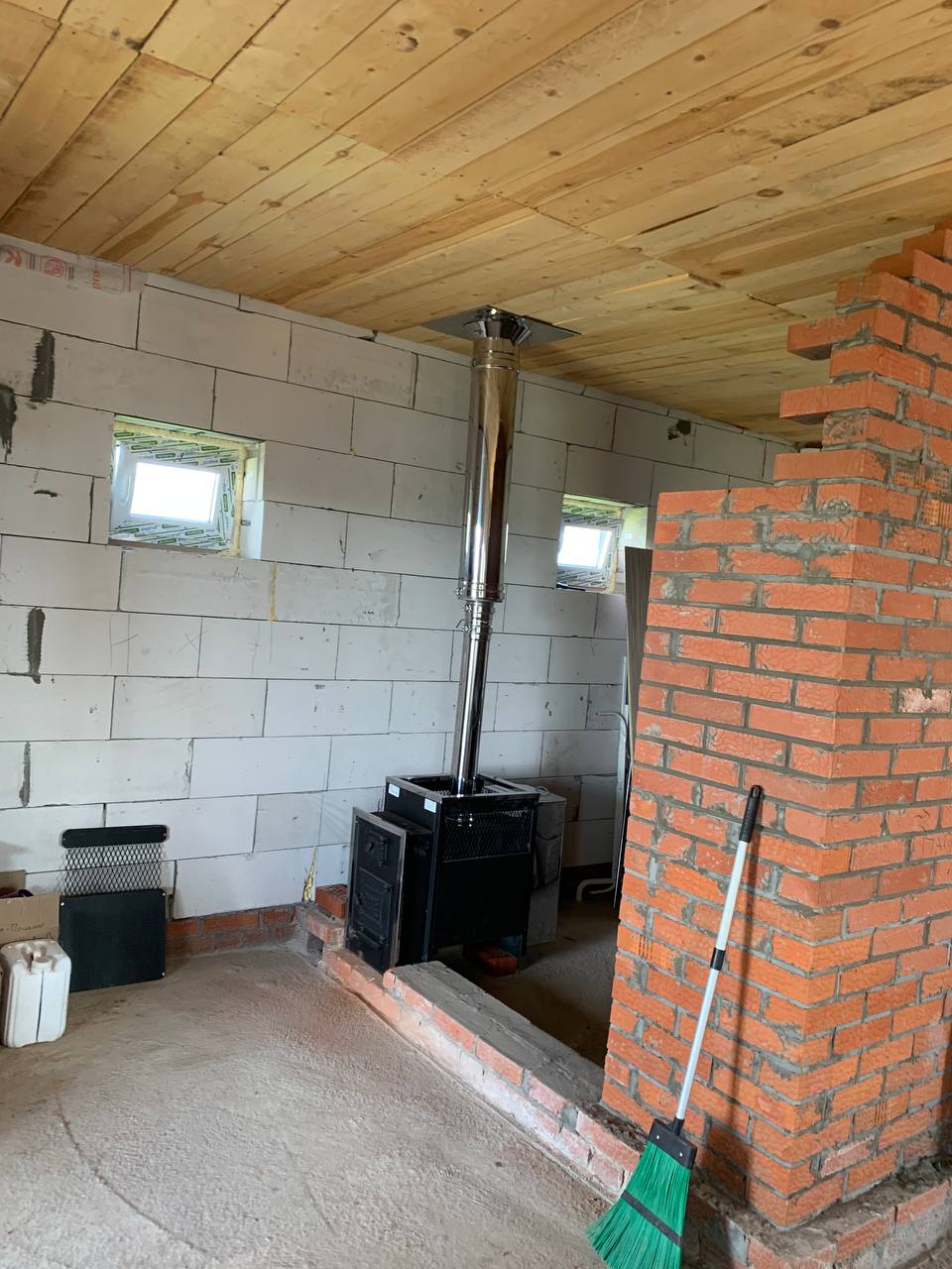 Монтаж банной печи Радуга ПБ-21Б с установкой дымохода