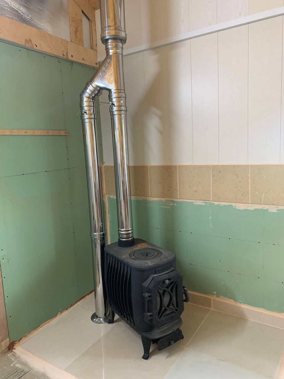 Монтаж Чугунной отопительно-варочной печи «Сибирь» с коплектом дымохода ТИС
