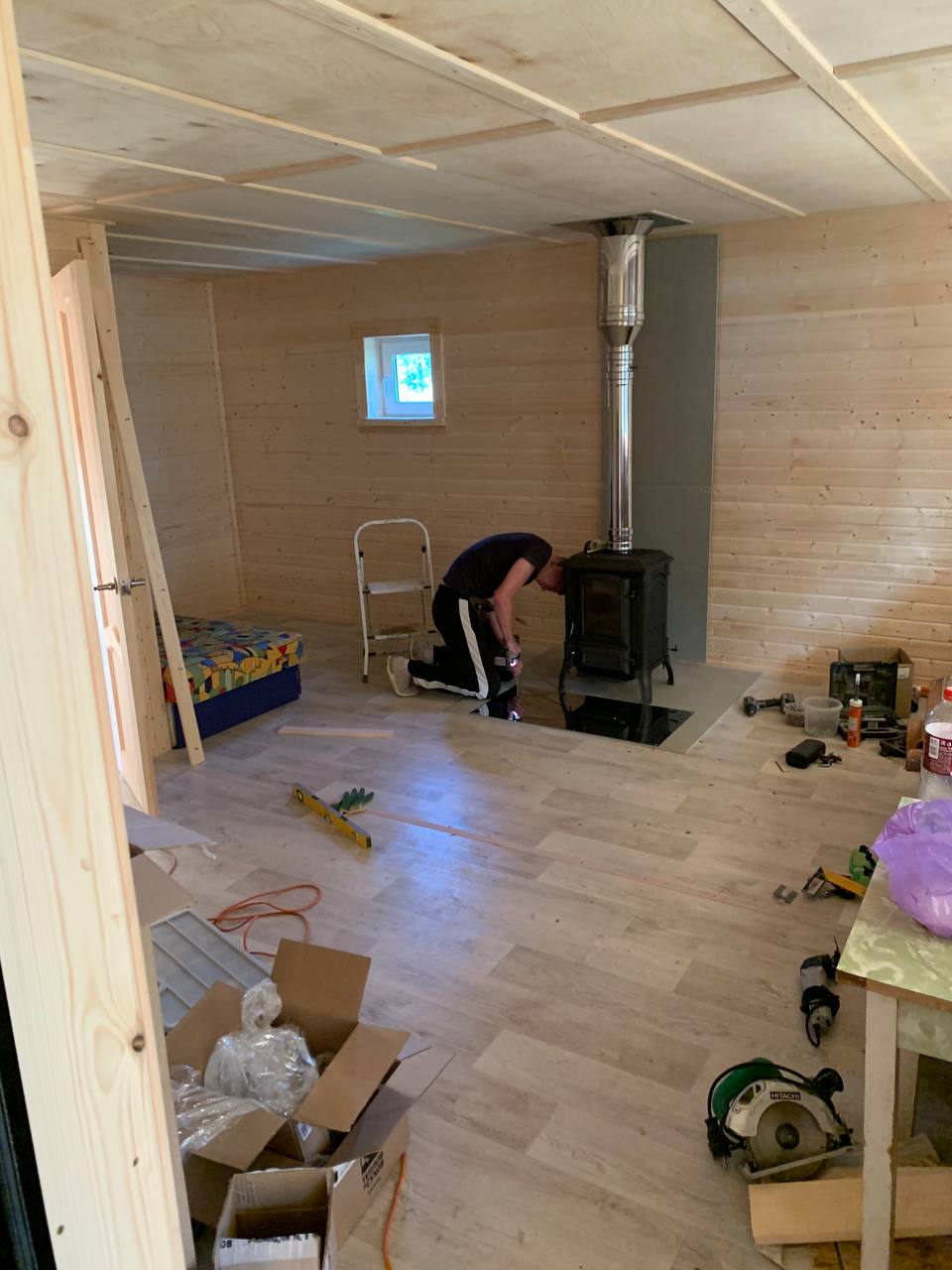 Установка печи-камина  FireWay Bruno1 и монтаж дымохода Теплов и Сухов